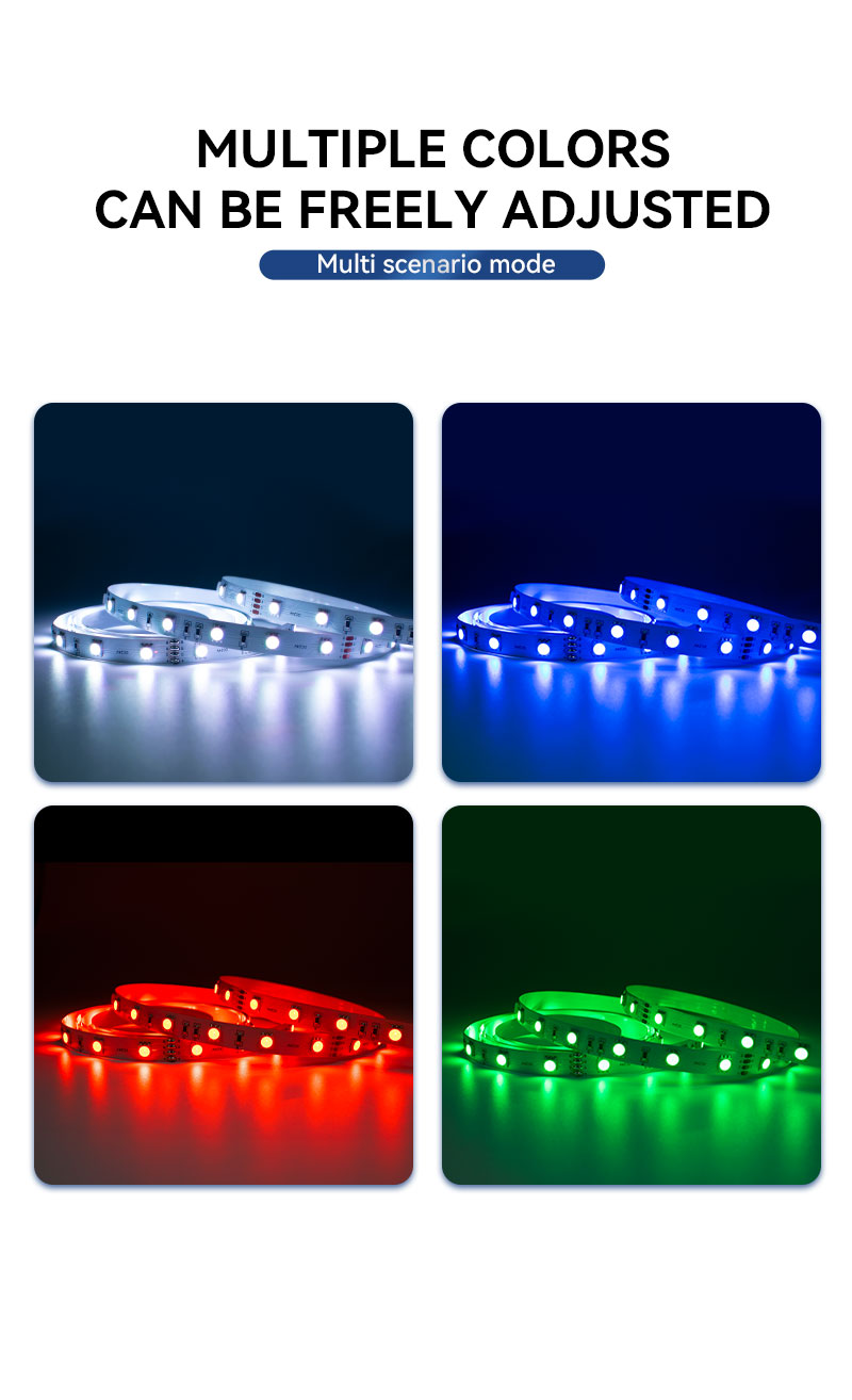 إضاءة رائعة وفعالة: تتميز بمصابيح LED من نوع 5050 SMD RGB عالية الجودة تنتج ألوانًا مشبعة ونابضة بالحياة مع سطوع ممتاز.