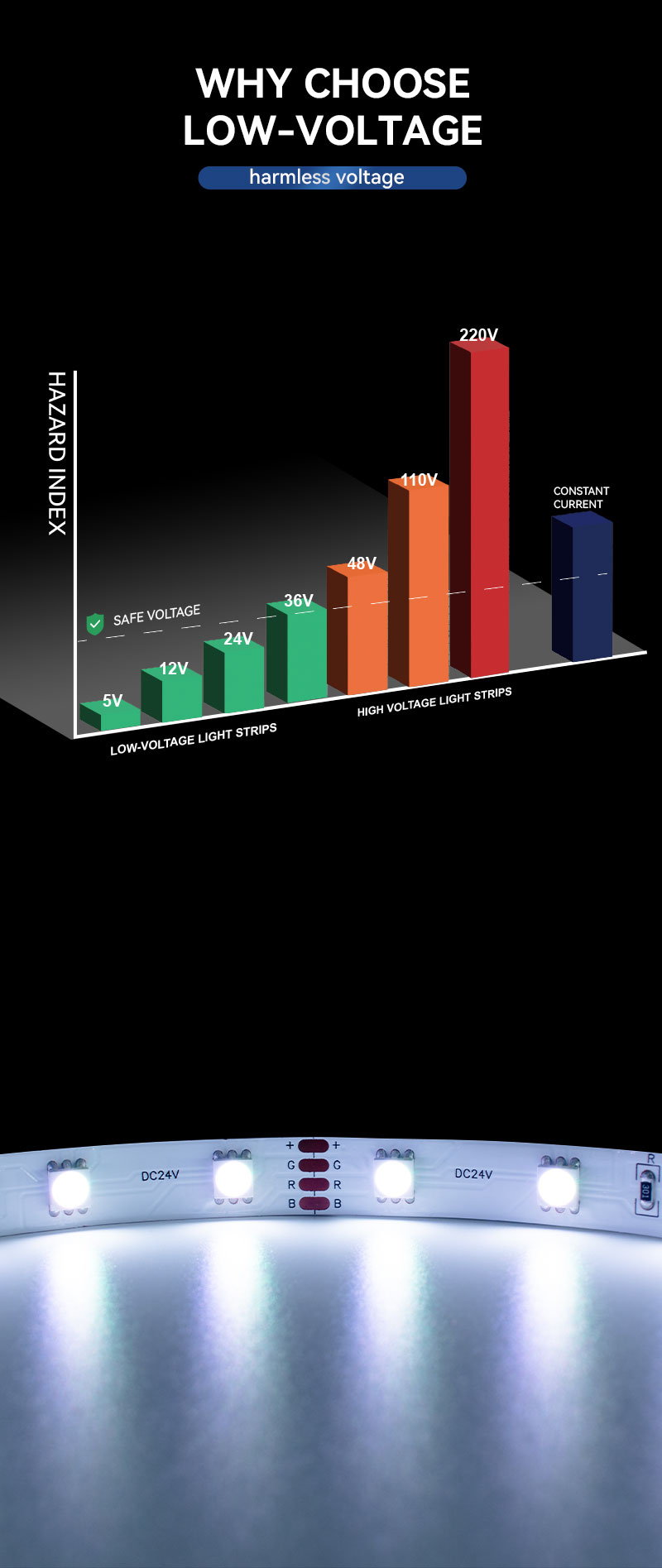 أداء موثوق به بجهد 24 فولت: يقلل التشغيل بجهد منخفض 24 فولت من انخفاض الجهد، مما يضمن ثبات اللون والسطوع حتى في التركيبات الممتدة.