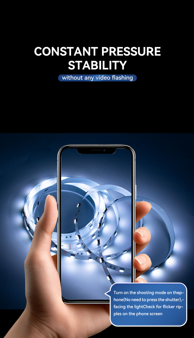 2. سطوع عالي الكثافة : مع 48 مصباح LED لكل متر يوفر هذا الشريط إضاءة استثنائية وانتشارًا سلسًا ومتسقًا للضوء دون بقع داكنة قبيحة، وهو مثالي للتطبيقات ذات الجودة الاحترافية.