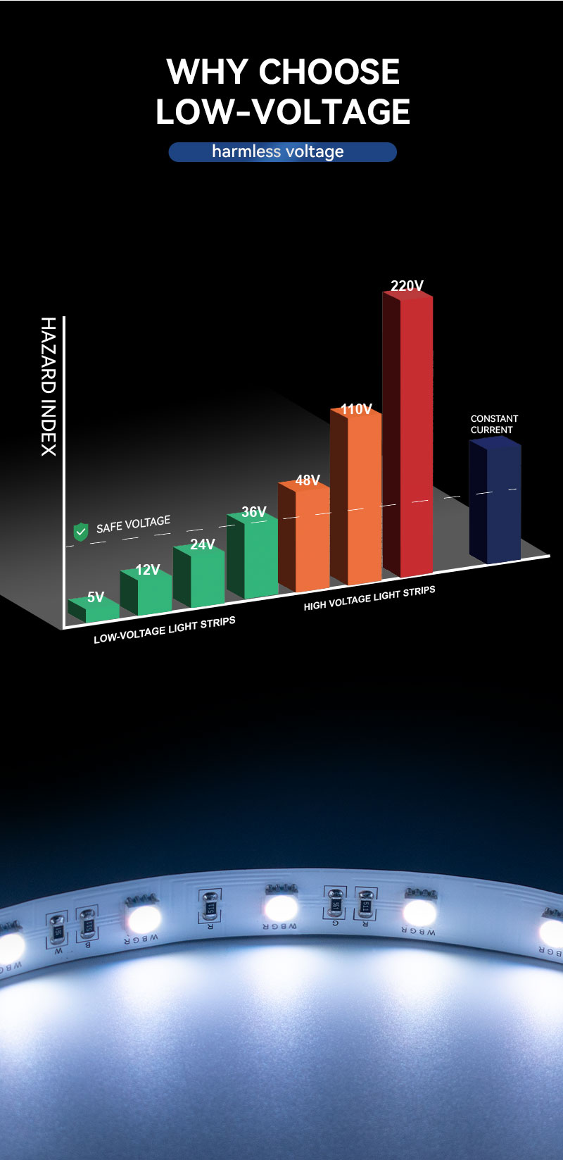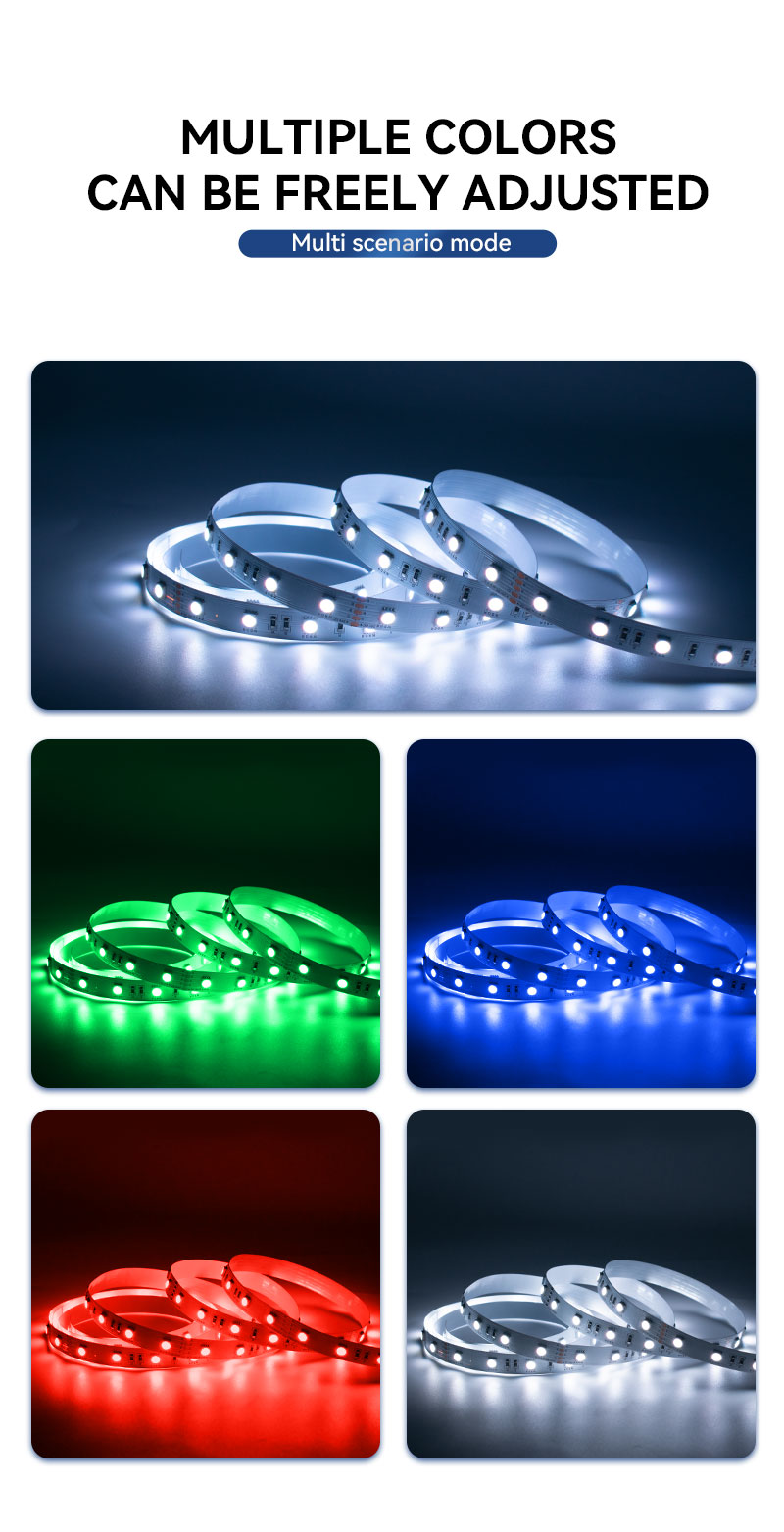 3. مرن وقابل للتحكم قابلة للتعتيم بالكامل ومتوافقة مع مختلف أجهزة التحكم (RF، WiFi، Bluetooth، Zigbee). توفر ملايين الألوان، وأنماطًا ديناميكية (تدرج لوني، وميض)، وتتكامل بسلاسة مع أنظمة المنزل الذكي مثل Alexa أو Google Home للتحكم الصوتي.